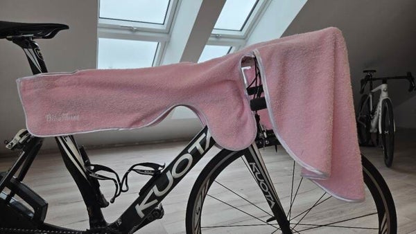 Das BikeTowel ist ein speziell entwickeltes Handtuch, das dein Fahrrad beim Rollentraining vor Schweiß, Feuchtigkeit und Korrosion schützt.